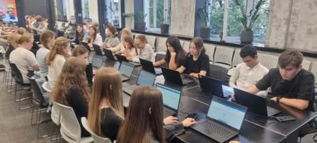 Наши девятиклассники активно подключились к активностям проекта и первые четыре класса 9Б,9В,9И,9К вчера, 17 сентября, посетили профориентационный центр «Профессии будущего».