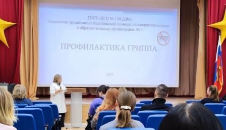 Темой встречи была профилактика гриппа и значение вакцинации для защиты детей и взрослых в предэпидемический сезон. Врач рассказал о гриппе как о тяжёлой вирусной инфекции, которая опасна своими осложнениями, о статистике болеющих ежегодно и о таких вакцинах, как «Гриппол Плюс», «Совигрипп», «Ультрикс», которые хорошо переносятся детьми и взрослыми, не содержат живого вируса и разрешены даже беременным женщинам. Родители задали множество вопросов и получили квалифицированные ответы. Главное, будьте здоровы и не забудьте сделать прививку!