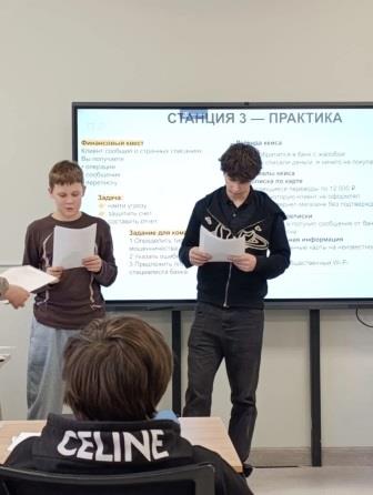Так же школьникам предложили самостоятельно провести расследование по денежным операциям и выявлении мошенничества. Ребята разделились на команды и решали кейсы по реальны событиям, принимали решение и защищали свою точку зрения.
